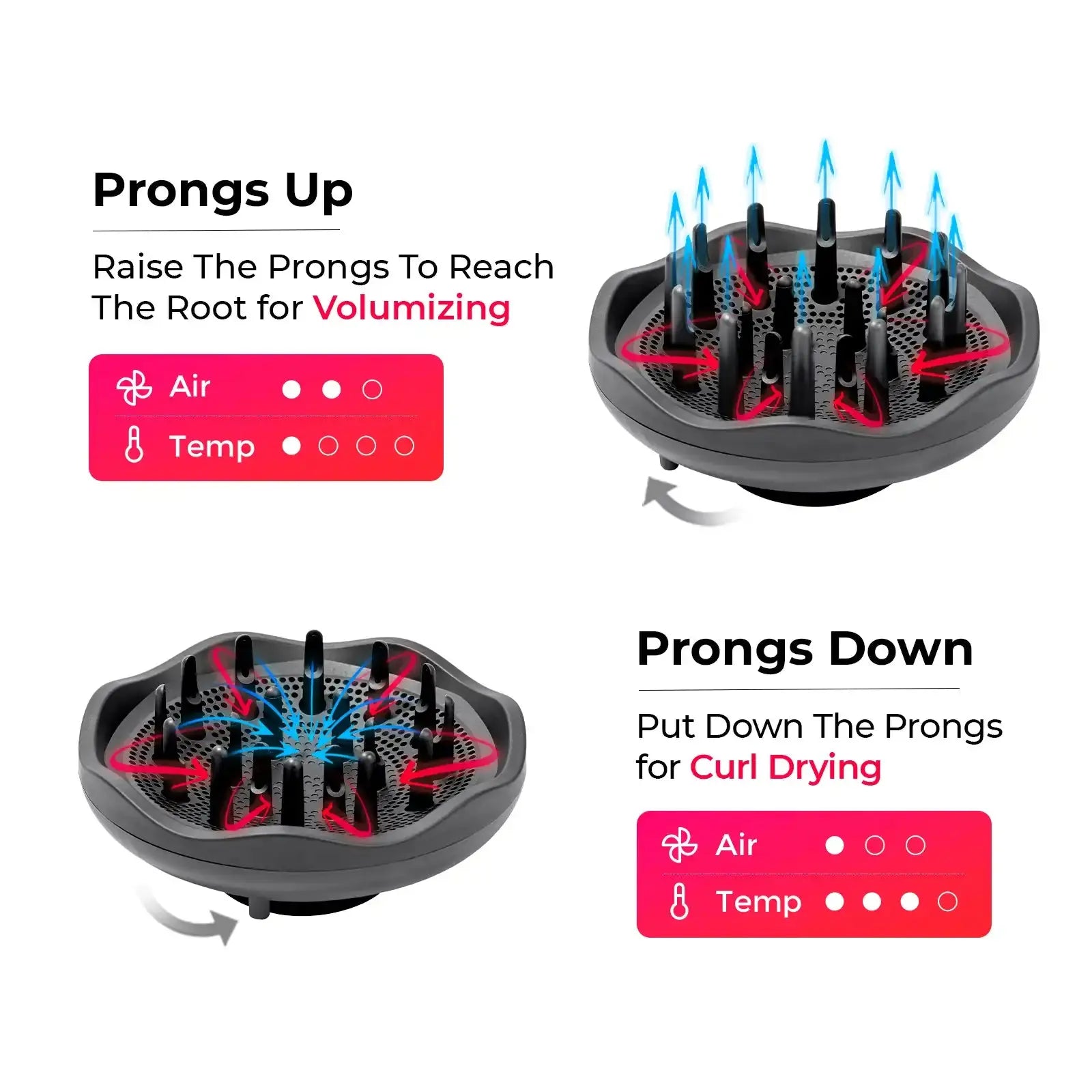 Discover our #1 selling hair accessory – the adjustable hair dryer diffuser. Compatible with our AIRHYPE Lite hair dryer, the best hair diffuser offers a unique adjustable prong system, allowing you to tailor your hair drying and styling experience.