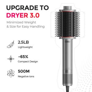 Dry, volumize, and easily smooth your hair using our innovative 3.0 design. The 110,000 RPM high-speed motor ensures fast drying without excessive heat, while the T-GLOSS ceramic coating and 500 million negative ions lock in moisture and enhance shine. Enjoy tangle-free blowouts with a built-in smoothing comb and soft bristles for a hassle-free experience. The ergonomic slim grip and lightweight build make it perfect for travel and on-the-go styling.
