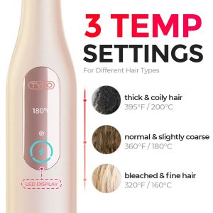 • 3 Temperature Settings (160℃/320℉, 180℃/360℉, 200℃/395℉), customizable for different hair types