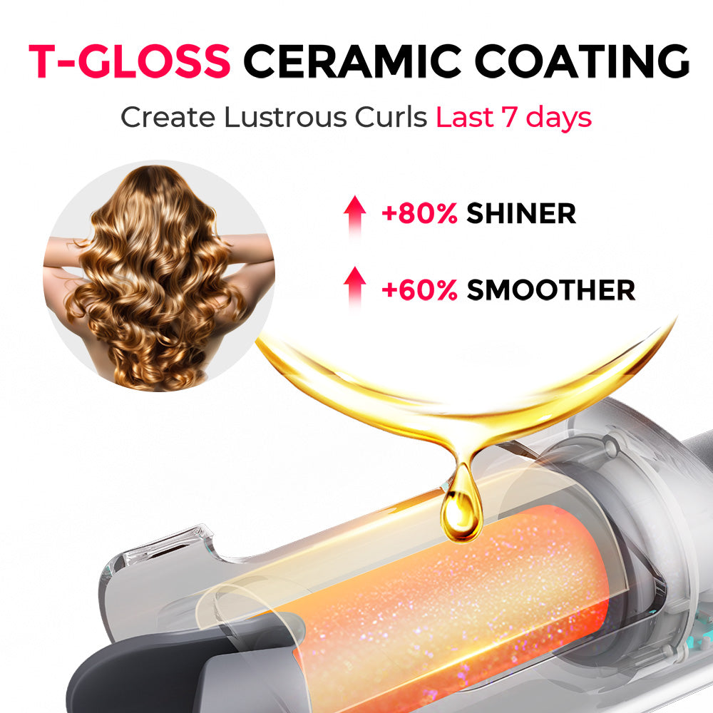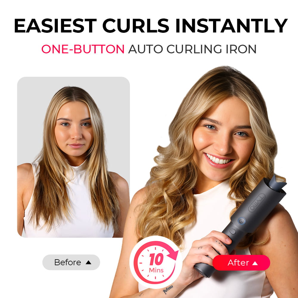 Achieve quick, consistent curls in just 10 minutes with the TYMO CURLPRO auto-rotating curling iron. Designed with beginners in mind, it features a one-click rotation function to take the hassle out of styling. The 360° cool-to-the-touch anti-scald shell ensures safe, tangle-free use, making it ideal for all hair types. Infused with T-GLOSS ceramic coating and 200 million negative ions, TYMO CURLPRO locks in moisture, delivers stunning shine, and creates long-lasting curls that hold for up to 72 hours. Get ready for smooth, salon-quality waves with zero effort.