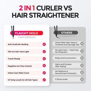 Perfect for all hair types, the floating plates adapt seamlessly to different textures, and with 10 temperature levels (265℉–430℉), you can customize the heat for optimal results. With global voltage, a plate lock, a 360° swivel cord, and an ergonomic grip, it’s designed for effortless styling at home or on the go.