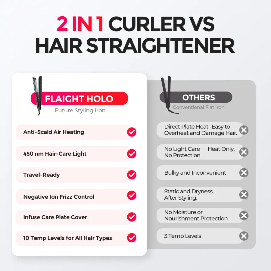 The TYMO FLAIGHT HOLO, a next-generation hair straightener designed for faster, smoother, and safer styling. With 35% longer plates, it handles more hair in each pass—making it ideal even for thick or long hair. Thanks to its 30-second quick heat-up, you can achieve sleek looks effortlessly, even on busy mornings.