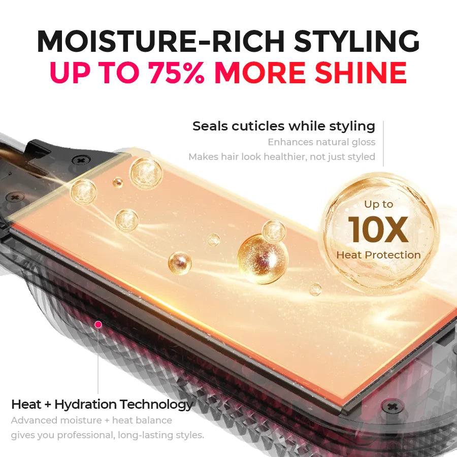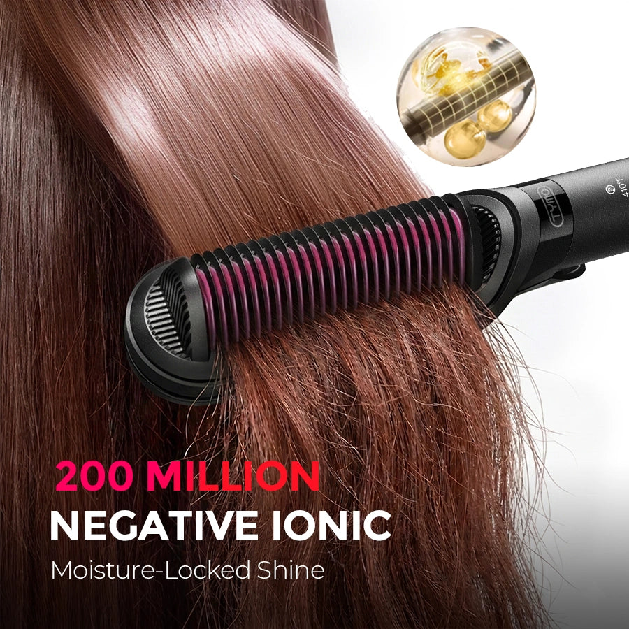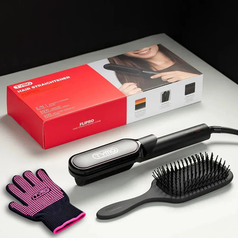 TYMO FLIPRO, the new-generation hair straightener. It saves you time—just brush, and your hair turns straight. Its anti-scald design reaches roots safely. Compared to traditional irons, it delivers better results: shiny, healthy, silky hair with more volume.