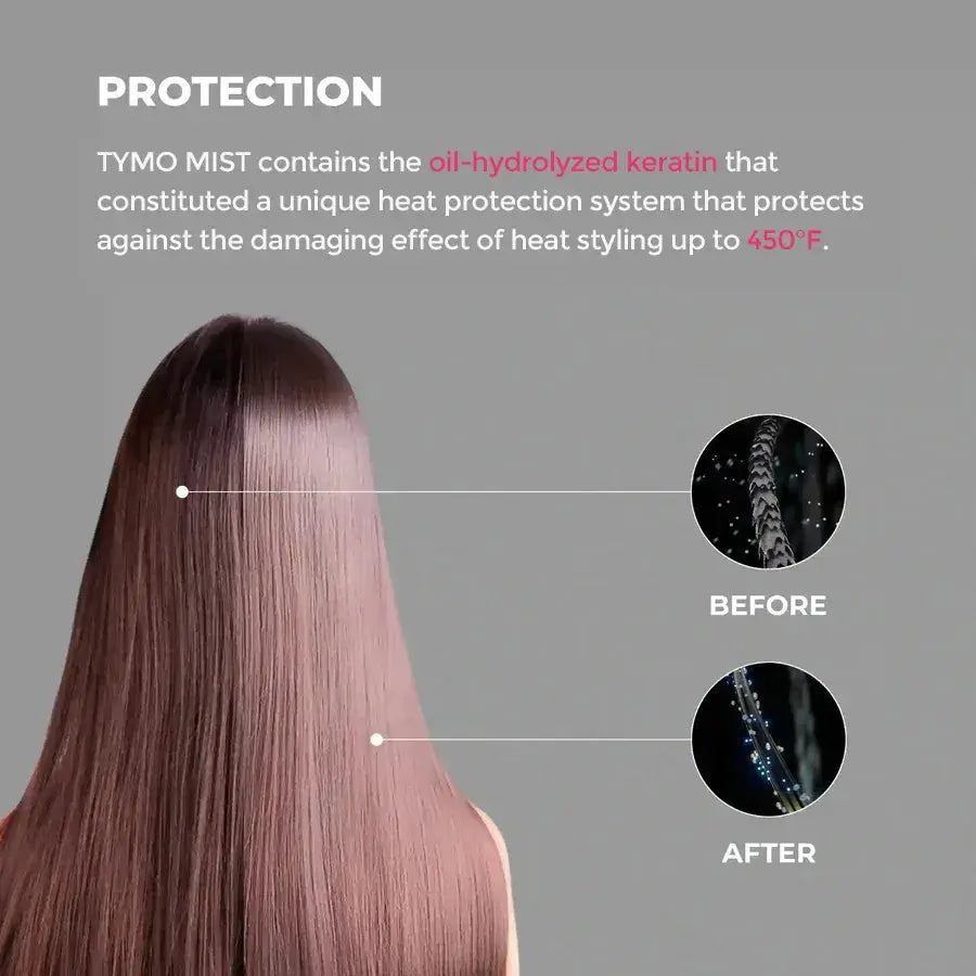 Discover the secret of a silky, damage-free hairstyle with TYMO Mist. This product is specially formulated with oil-hydrolyzed keratin to meet all your hair care and styling needs, while providing intense heat protection (up to 450°F) to prevent damage and breakage. The essence infused with Argan oil can protect each hair strand without leaving it greasy. Pamper your strands with this extremely versatile and lightweight mist, and keep your hair sleek, healthy, and free from breakage. Infused with ionic Moroccan oil, spicy amber, and sweet florals, the unique scent of TYMO also doubles as a calming aromatherapy moment for your mind.