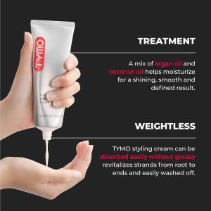 TYMO styling cream contains the Hydrolyzed Vegetable Protein PG that protects against heat damaging up to 450°F, leaves soft, sleek and healthy results.