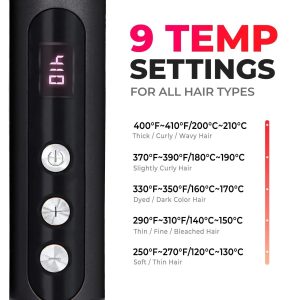 • 9 Temp Settings for customized hair type without unnecessary heat (250℉-410℉)