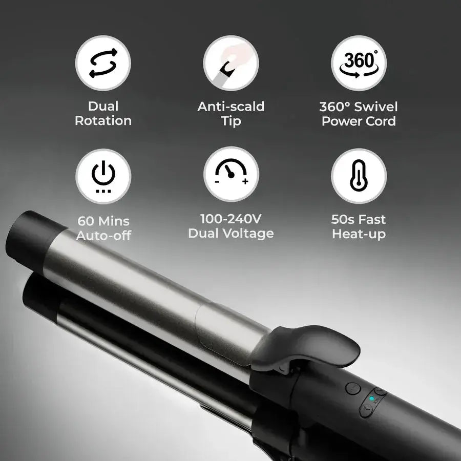 • Patented dual rotation technology creates bouncy curls in minutes