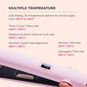 - LCD display, different temperature options for all hair types(250℉-450℉)