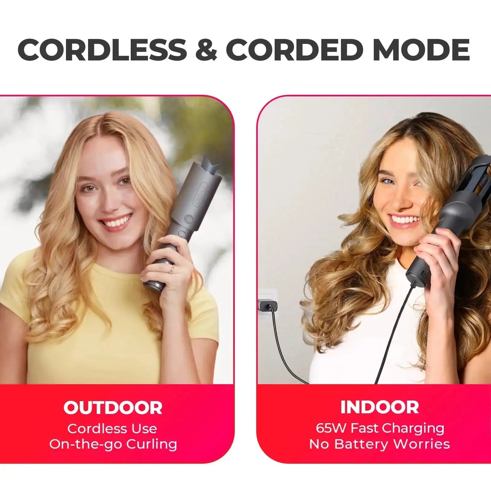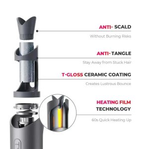 Transform your styling routine with TYMO CURLGO GREY, 1 inch cordless, and corded Automatic Curling Iron. With a cordless design and dual voltage compatibility, it’s the perfect travel essential. Powered by a massive 7000 mAh battery, offers up to 60 minutes of cord-free styling. T-GLOSS ceramic coating and 200 million negative ions create long-lasting, salon-quality results. Effortlessly create stunning curls anytime, anywhere with the perfect blend of style, innovation, and convenience.