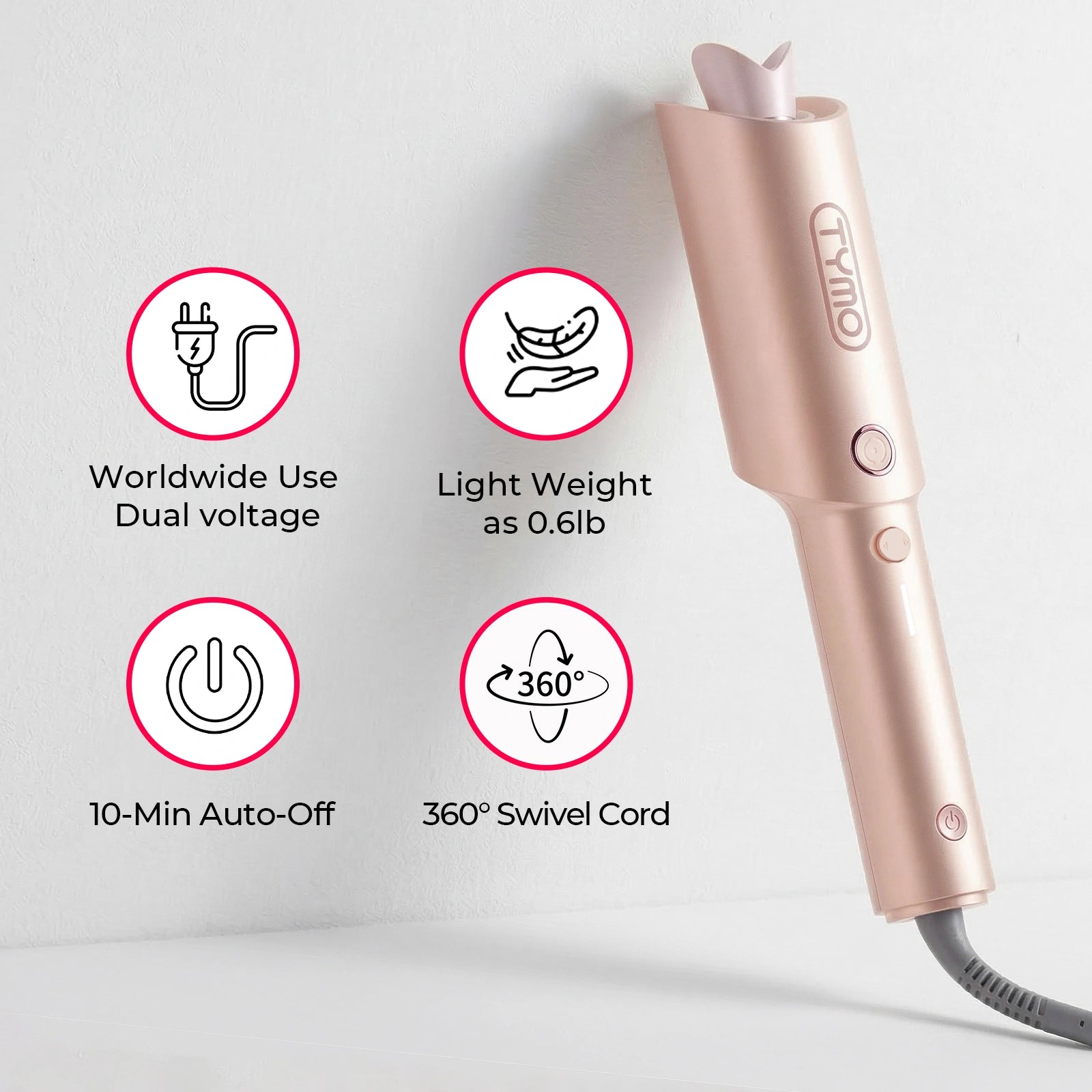 Achieve quick, consistent curls in just 10 minutes with the TYMO CURLPRO auto-rotating curling iron. Designed with beginners in mind, it features a one-click rotation function to take the hassle out of styling. The 360° cool-to-the-touch anti-scald shell ensures safe, tangle-free use, making it ideal for all hair types. Infused with T-GLOSS ceramic coating and 200 million negative ions, TYMO CURLPRO locks in moisture, delivers stunning shine, and creates long-lasting curls that hold for up to 72 hours. Get ready for smooth, salon-quality waves with zero effort.