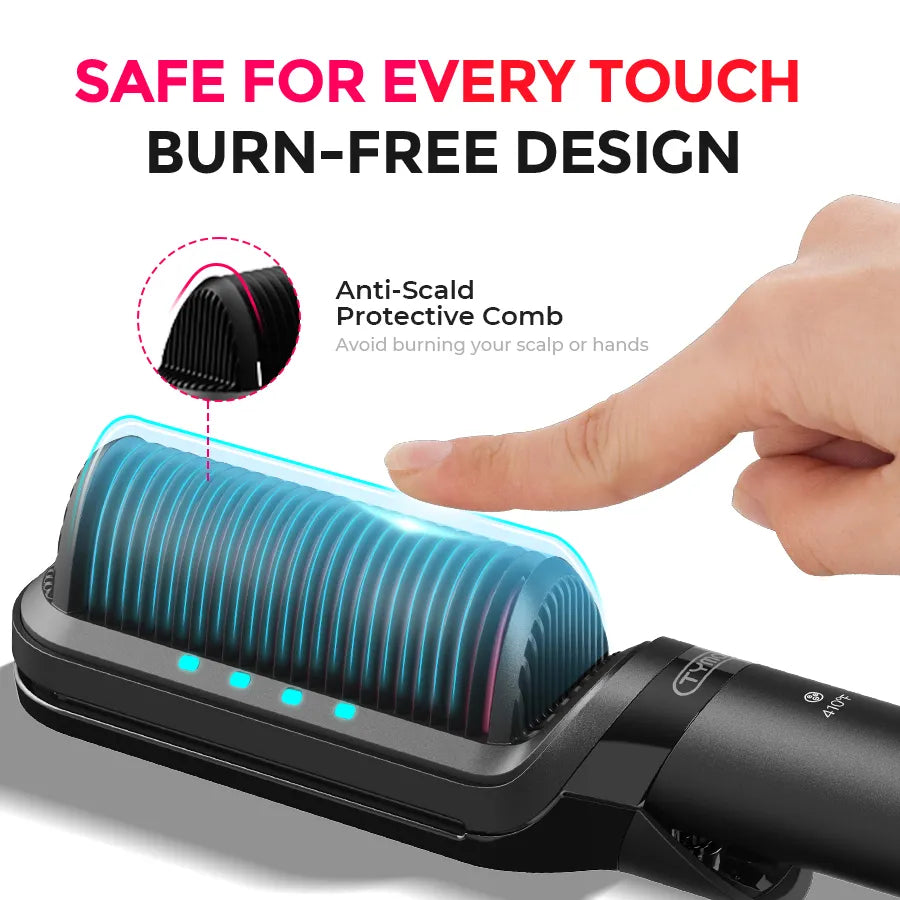 TYMO FLIPRO, the new-generation hair straightener. It saves you time—just brush, and your hair turns straight. Its anti-scald design reaches roots safely. Compared to traditional irons, it delivers better results: shiny, healthy, silky hair with more volume.