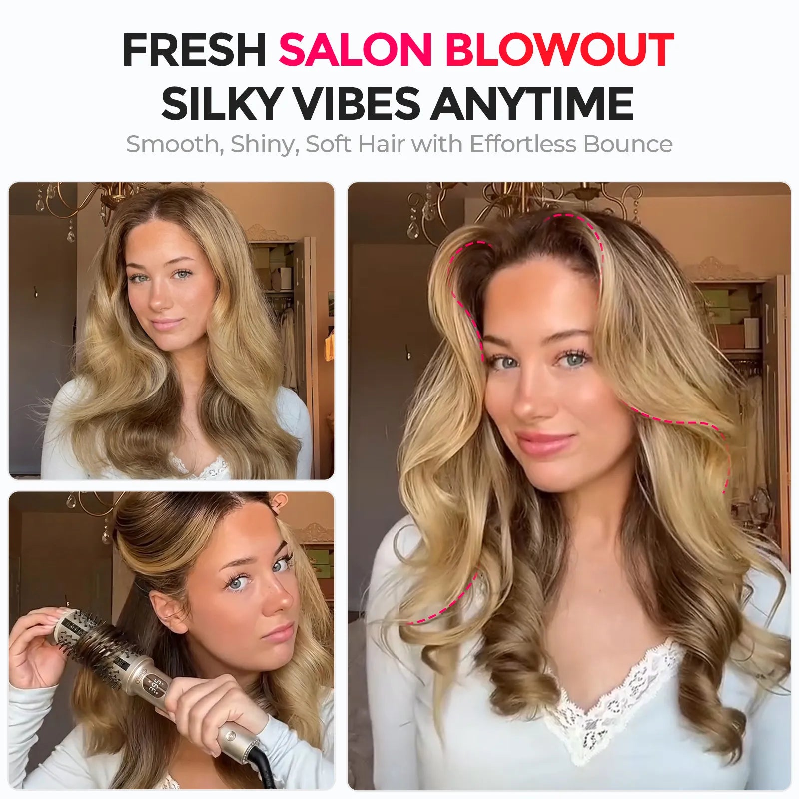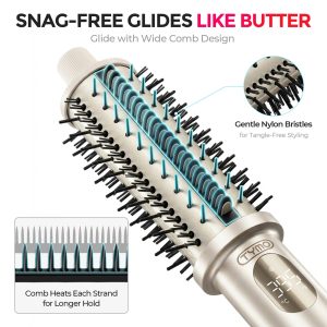 Its patented 1.5″ ceramic round barrel is paired with 3D wavy teeth and staggered bristles, giving you a secure grip on your hair without pulling or tangling. The wide, smooth surface ensures effortless gliding for seamless styling.